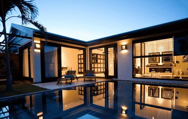 Biệt thự hồ bơi riêng: Thiết kế hiện đại, diện tích rộng rãi, có hồ bơi riêng và sân nhỏ nhìn ra cảnh hoàng hôn tuyệt đẹp.